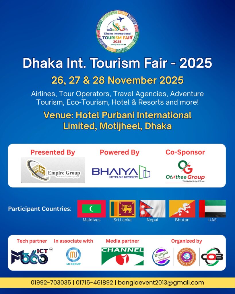 Bangla Event International is a premier Dhaka-based professional event management and organizing company with a long-standing history of success. We specialize in curating high-impact national and international events, expos, fairs, and shows across diverse sectors, including: Real Estate Fairs, Export Import and Remittance-oriented International Fairs, Musical Shows and Award Organizing, Tourism Fairs, and General Trade Shows. Our commitment is to create professionally managed platforms that serve as catalysts for business development, economic growth, and industry exposure within Bangladesh and the greater South Asian region.